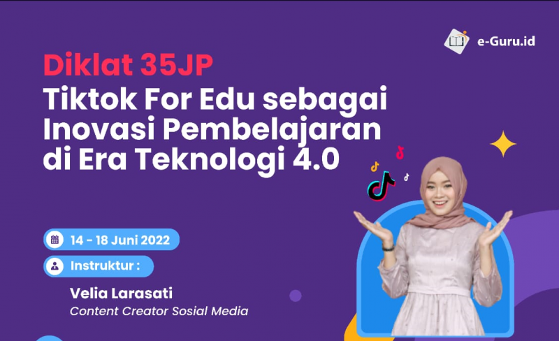 Pembelajaran dengan Tiktok – Diklat bersertifikat 35 JP dengan mengangkat judul Tiktok For Edu sebagai Inovasi Pembelaaran di Era Teknologi 4.0 akan diselenggarakan mulai tangga 14- 18 Juni 2022.