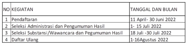 - seleksi substansi dengan wawancara yang menilai antara lain aspek kemampuan akademik/ keterampilan, sikap, dan wawasan kebangsaan.