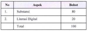 Metode penilaian video dan naskah menggunakan instrumen terkait terkait substansi dan literasi digital dengan 5 skala penilaian.