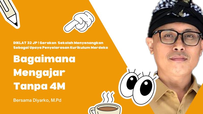 Bahasan di pertemuan ketiga diklat online gratis ini adalah Bagaimana Mengajar Tanpa 4M (Menasehati, Menyuruh, Melarang, dan Memarahi), dimana tujuan pertemuan ketiga diklat ini harapannya peserta dapat mengetahui bahwa guru mampu mengajar dengan tanpa menggunakan 4M, tetapi lebih memberikan kesempatan siswa untuk lebih merdeka belajar.