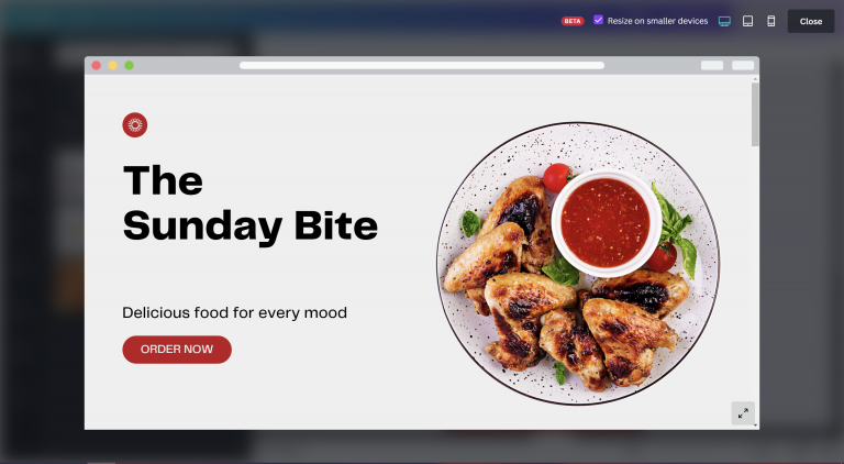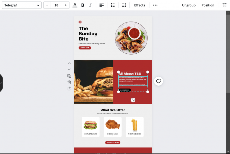 3. Selanjutnya, kita bisa memilih template website yang telah disediakan oleh Canva. Sebagai contoh, saya akan memilih template Sunday Bite – Red colorful block food and restaurant service.