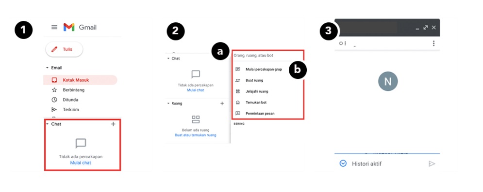 - Menuju ke menu Chat pada sisi kiri Gmail Anda. Klik tulisan Mulai chat atau klik ikon plus