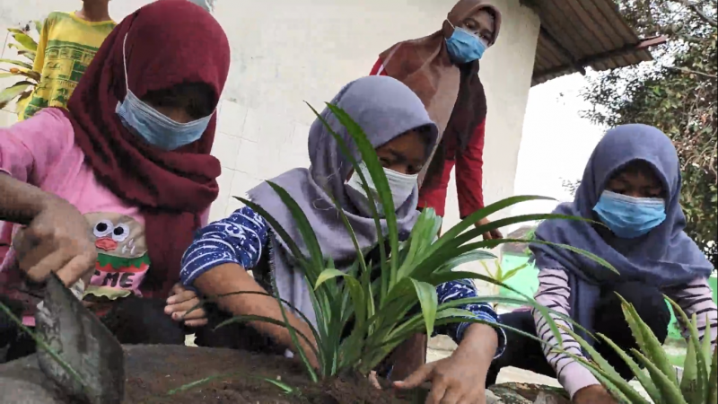 Karena guru sebelumnya telah mengamati lingkungan sekolah, guru segera mengajak siswa untuk melihat tanaman di belakang sekolah yang berkembang biak. Mereka diajak untuk mengidentifikasi tumbuhan yang berkembang biak dengan tunas atau akar tinggal. Tanaman yang tumbuh dengan tunas dapat ditemukan pada pohon bambu, sedangkan tanaman jahe dapat diamati berkembang biak dengan akar tinggal .