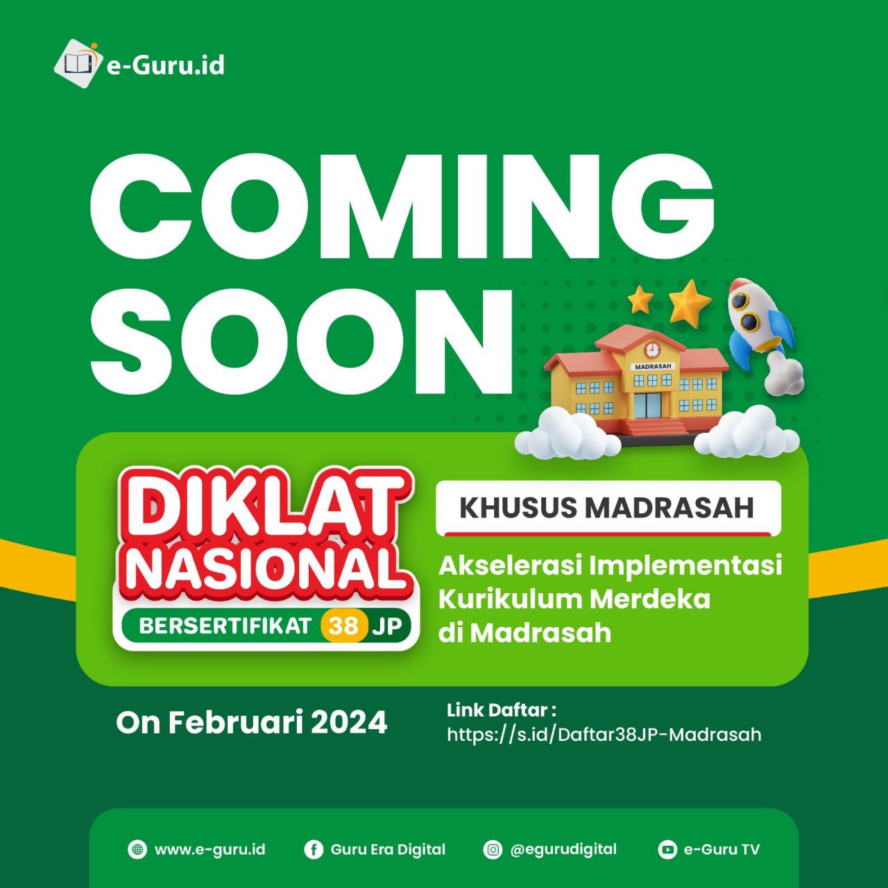 Tanggal 15-17 Februari 2024, e-Guru.id akan menyelenggarakan Diklat Nasional melalui platform Zoom Meeting dan Streaming YouTube.