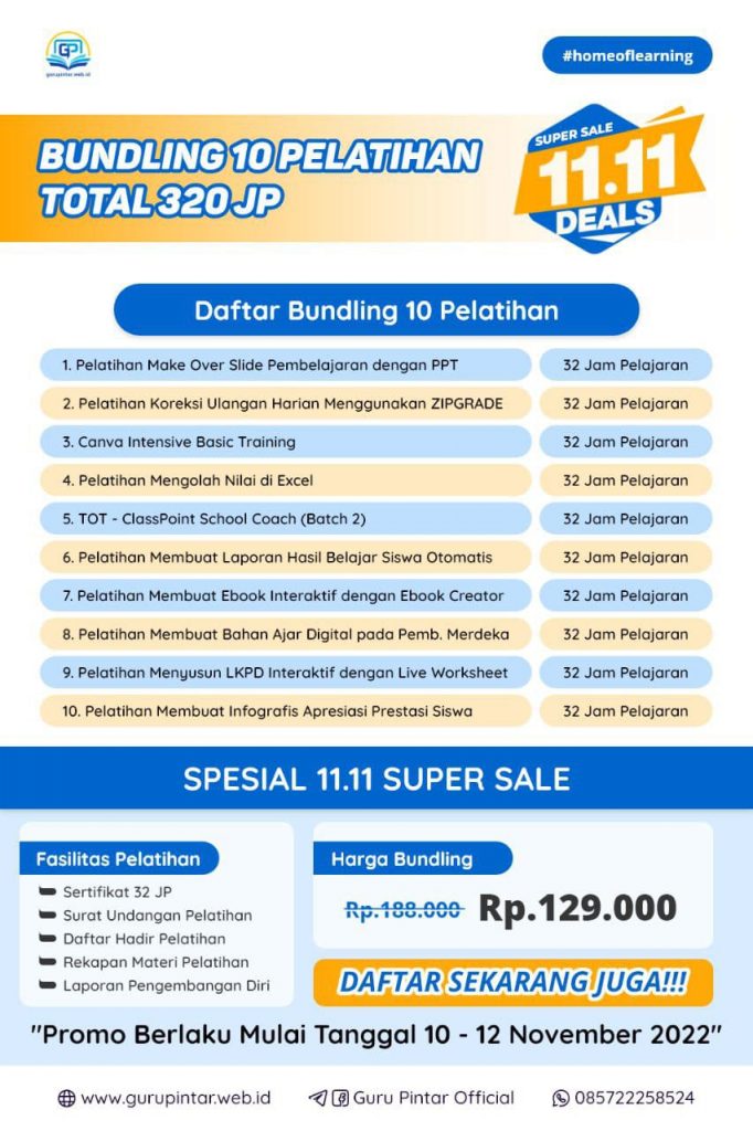 Fasilitas Promo Super Sale 11.11 10 Judul Pelatihan Guru Pintar Official :