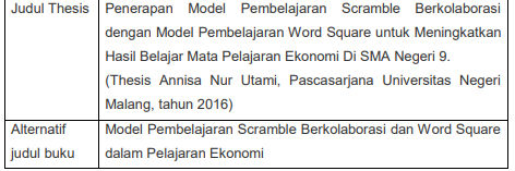 Sebagai buku ilmiah, judul buku hasil konversi harus mencerminkan isi. Bahasanya lugas. Tidak menggunakan Bahasa kias. Perhatikan contoh berikut