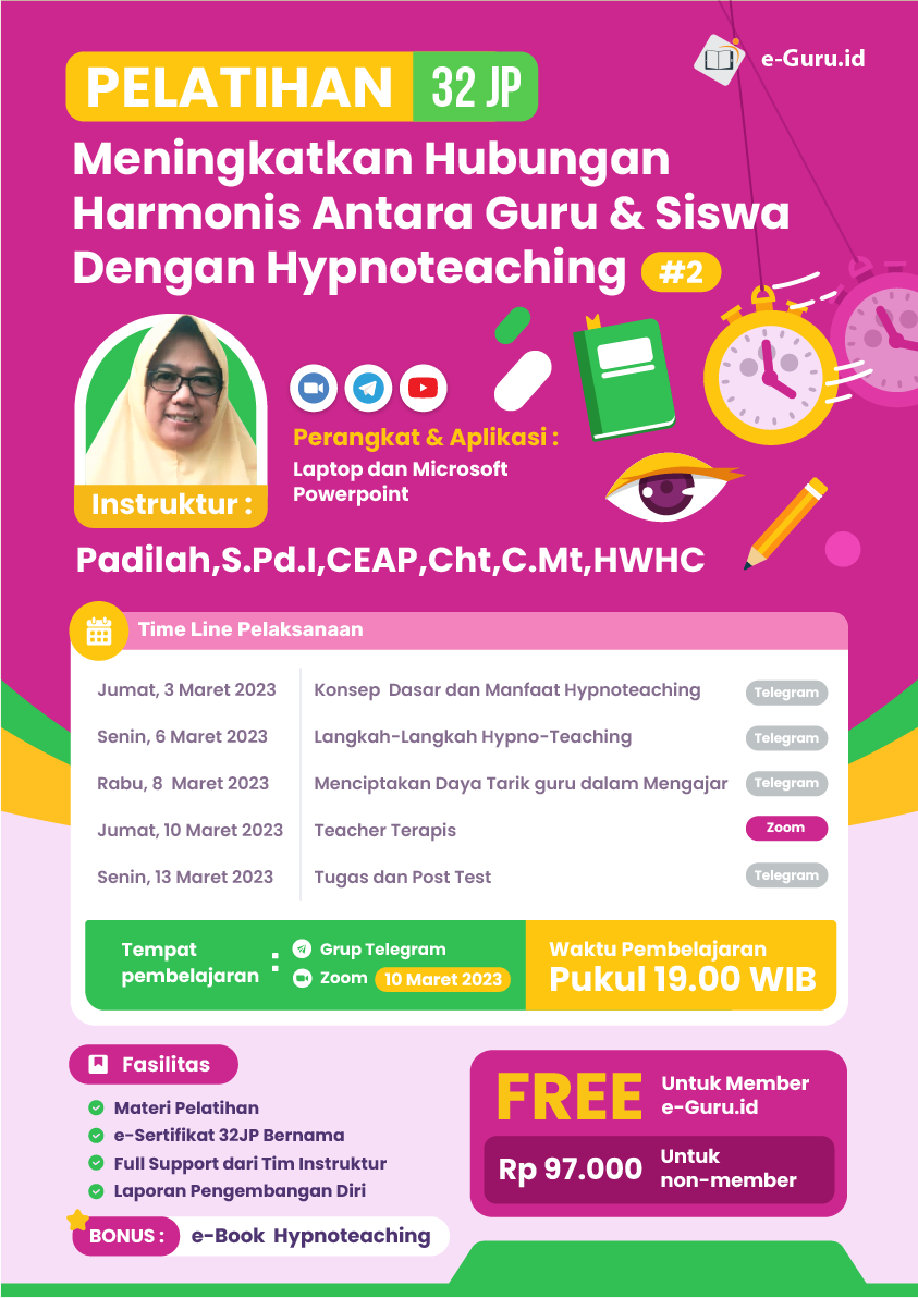 Pelatihan Bersertifikat 32 JP Meningkatkan Hubungan Harmonis Antara Guru dan Siswa dengn Hypnoteaching