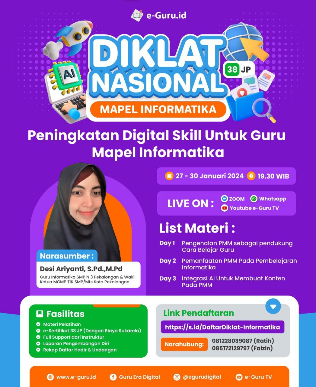 Demikian informasi tentang Info Untuk Guru Sertifikasi dan Non Sertifikasi Ikuti Diklat Bersertifikat 38 JP Peningkatan Digital Skill untuk Guru Mapel Informatika, semoga dapat bermanfaat bagi Anda.