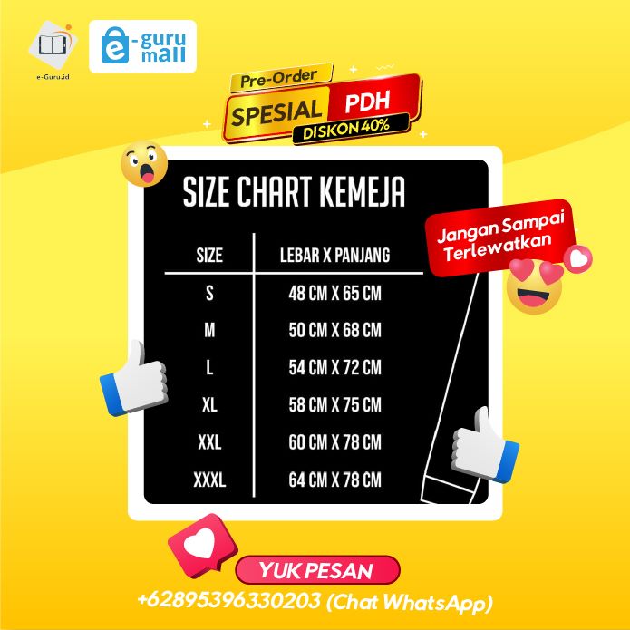 Tenang saja, tersedia juga berbagai ukuran yang disesuaikan dengan kebutuhan ukuran badan Bapak dan Ibu, mulai dari ukuran paling kecil yaitu ukuran S dan ukuran paling besar yaitu ukuran XXXL.